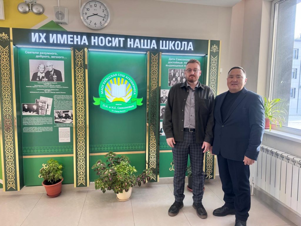 7 ноября в рамках визита в Якутск директор СОШ №15 города Благовещенска Эмиль Мубаризович Пенский посетил Хатасскую школу имени П.Н. и Н.Е. Самсоновых.