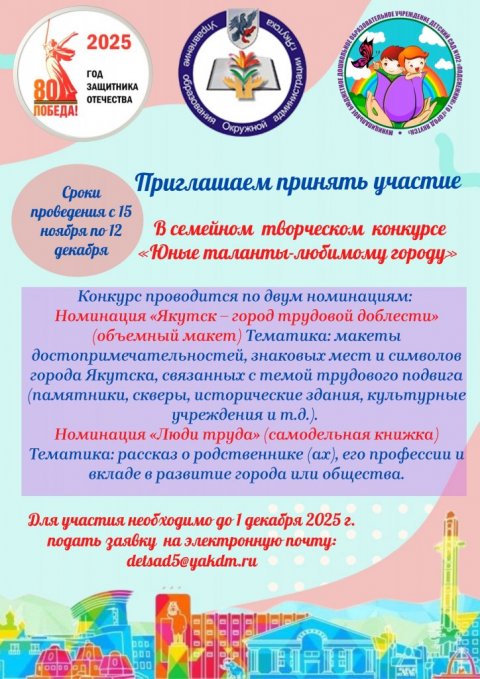 Подача заявок: до 1 декабря 2025 года на электронную почту: detsad5@yakdm.ru