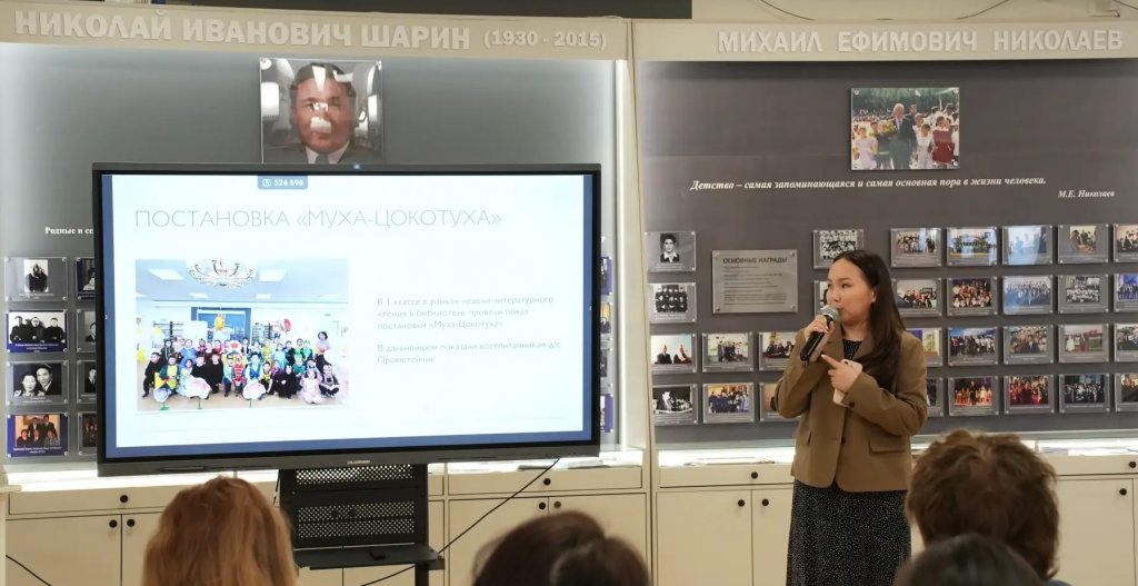 Родитель 3 к класса Айыына Нюргуновна Трофимова поделилась опытом интегрирования воспитательных мероприятий и информационной поддержки школьной библиотеки. Ведущую роль в организации заняла классный руководитель Осипова Варвара Спатаковна.