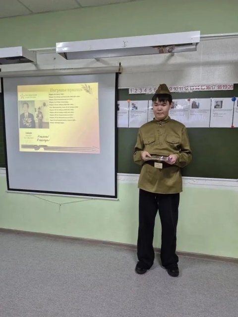 В школе прошел цикл уроков мужества, посвященных героям Сталинграда. Одним из самых трогательных моментов стало выступление ученика 8 «а» класса Максима Сивцева. При поддержке мамы и классного руководителя Елены Афанасьевой он рассказал одноклассникам историю своего дедушки — участника сражений под Сталинградом.