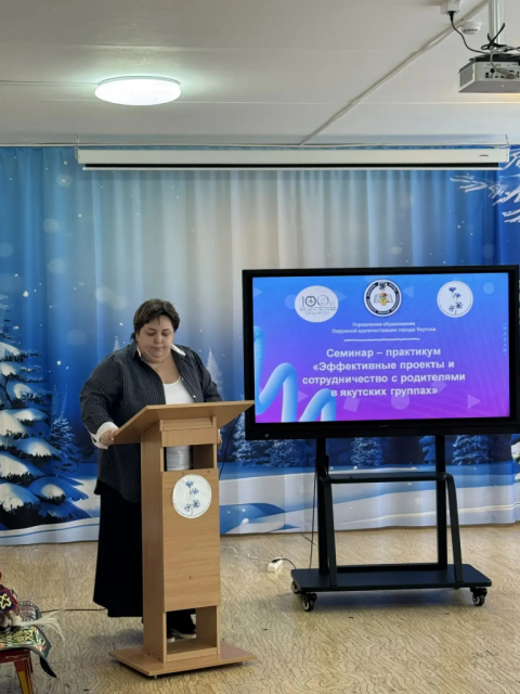 Открыла семинар начальник дошкольного отдела Управления образования г. Якутска ЕленаТомтосова. В своем выступлении она подчеркнула важность обучения якутскому языку в дошкольном возрасте и необходимость внедрения регионального компонента в образовательную программу.