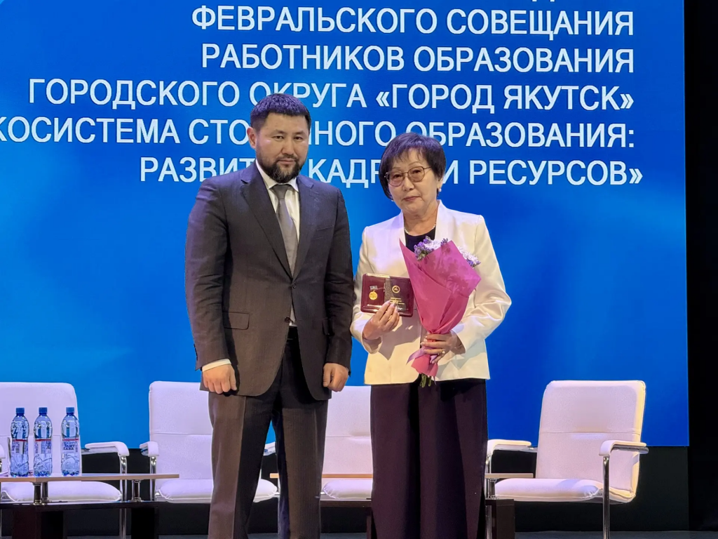 В торжественной обстановке глава города вручил государственные награды. Почетного звания «Заслуженный учитель Республики Саха (Якутия)» удостоены: