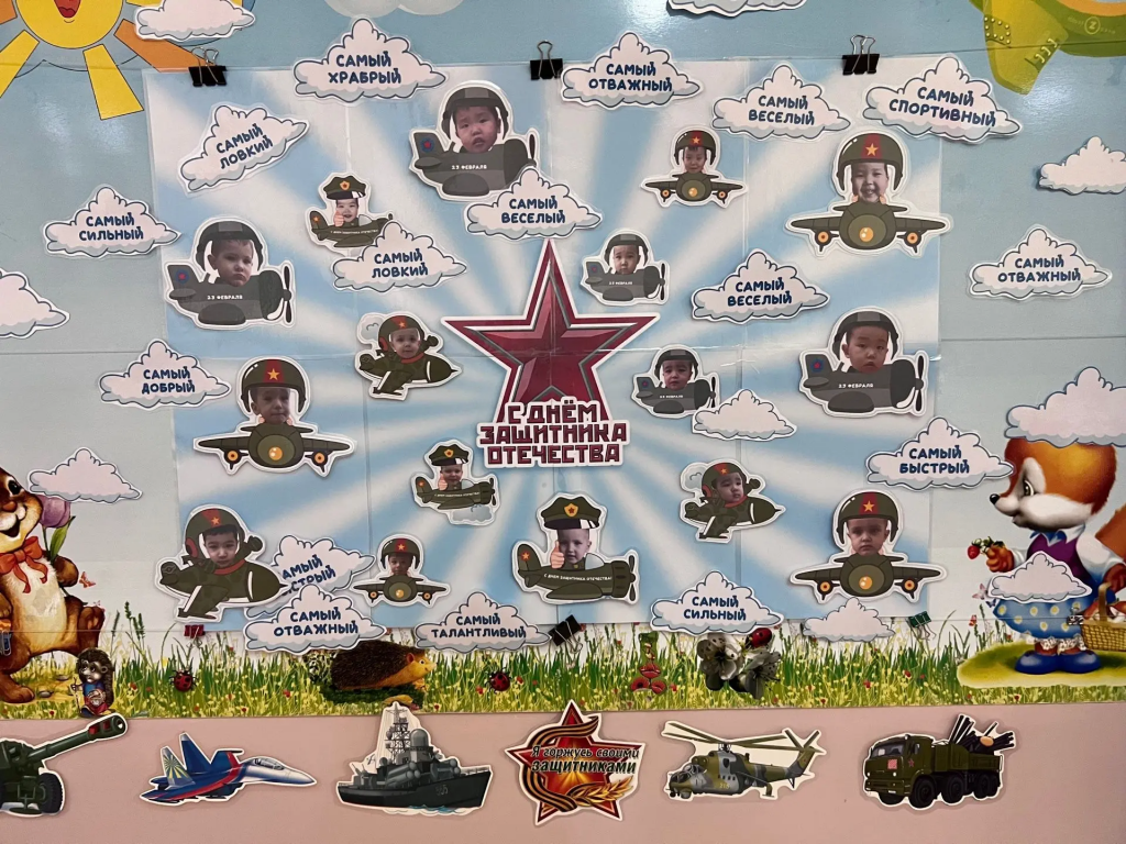 В младшей группе «Улыбка» дети отправились в увлекательное путешествие в мир авиации, примерив на себя роль отважных пилотов. Яркая тематическая стенгазета помогла ребятам почувствовать себя настоящими покорителями неба.