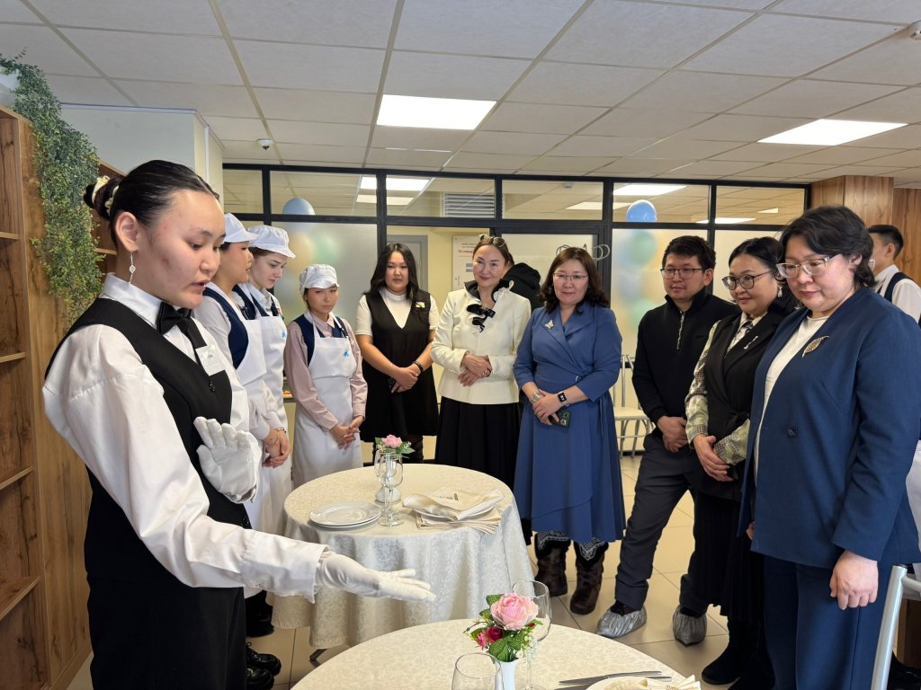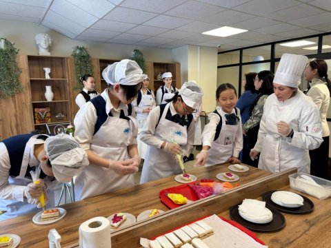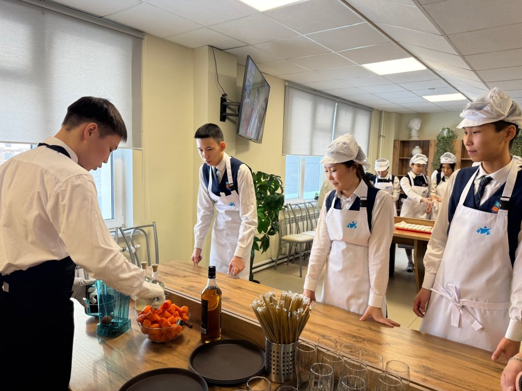 После официальной части гостей ждали увлекательные мастер-классы. Преподаватели и студенты техникума продемонстрировали искусство приготовления пирожных, мастерство барменов и обучили тонкостям сервировки стола. А победительницы республиканского чемпионата «Я профи» - ученицы школы Даяна Габышева и Дайаана Постникова продемонстрировали свои кулинарные таланты, приготовив салат.