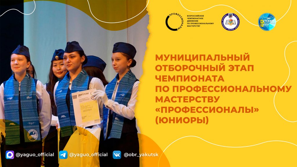 С 31 октября по 29 ноября 2025 года в городском округе "город Якутск" пройдет муниципальный отборочный этап чемпионата по профессиональному мастерству «Профессионалы» (Юниоры) Приказ Управления образования ОА г.Якутска от 06.10.2025 г. №01-10/980