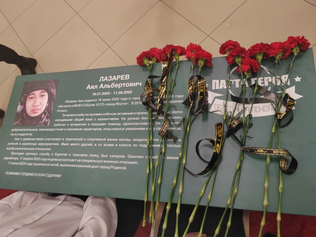 «ПАРТА ГЕРОЯ»: в школе №13 города Якутска увековечили память выпускника Аяла Лазарева