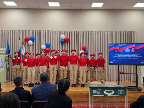Почетное право первыми сидеть за Партой Героя представилось ученикам 11 класса — отличникам учебы, призерам и победителям городских, региональных и всероссийских конкурсов, НПК, активистам первичного отделения Российского движения детей и молодежи «Движение первых»: Никитиной Сайааре и Гребенникову Николаю.