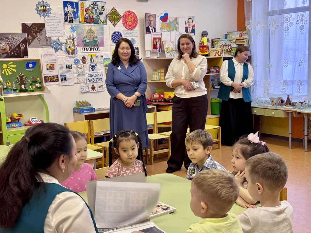 В рамках экскурсии делегация посетила русскоязычную группу, воспитанники которой с увлечением продемонстрировали урок по изучению якутского языка и фольклора, что подчеркивает приверженность детского сада к сохранению и развитию культурного многообразия.