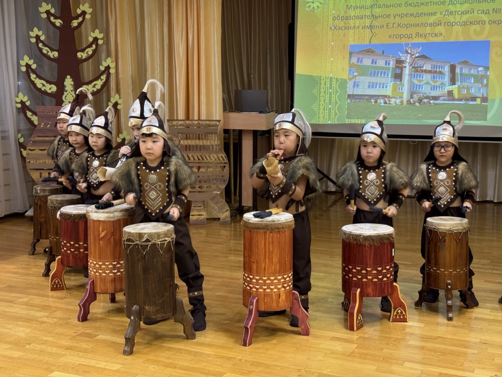 Воспитанники вместе с педагогами представили национальные игры, а интерактивная комната для изучения языков вызвала живой интерес. В музыкальной комнате был представлен уникальный проект воспитателя по переводу русских песен на якутский язык, а дети исполнили их на двух языках.