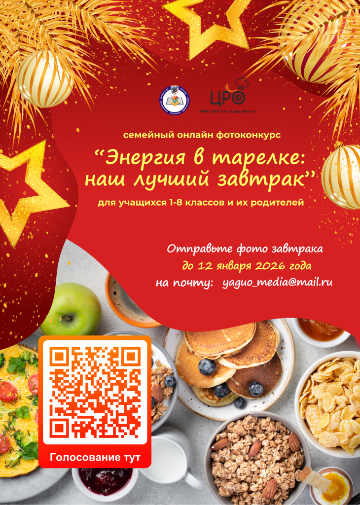 Управление образования Окружной администрации Якутска и организатор школьного питания МАУ «Центр ресурсного обеспечения» объявляют о старте семейного онлайн фотоконкурса «Энергия в тарелке: наш лучший завтрак» для учеников с 1 по 8 класс и их родителей.