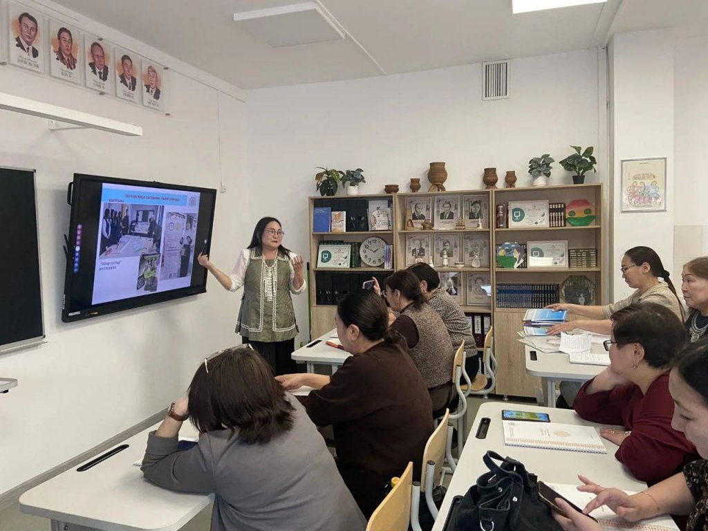 “Улуу Суорун суолунан” методическай сэминээргэ Леонтьева Н.П., Поротова С.Е., Заболоцкая У.В., Осипова М.В. өрөспүүбүлүкэ саха тылын, литературатын учууталларыгар баай уопуттарын сырдатан, учууталлар махталларын ыллылар.