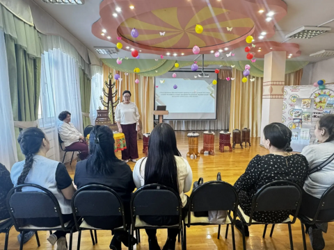 С лекциями об актуальных аспектах обучения на родном (якутском) языке и развития дошкольного образования выступили Светлана Семенова, ведущий научный сотрудник Центра изучения родных языков АН РС(Я), к.п.н. и Елена Томтосова, начальник отдела дошкольного образования, к.п.н.