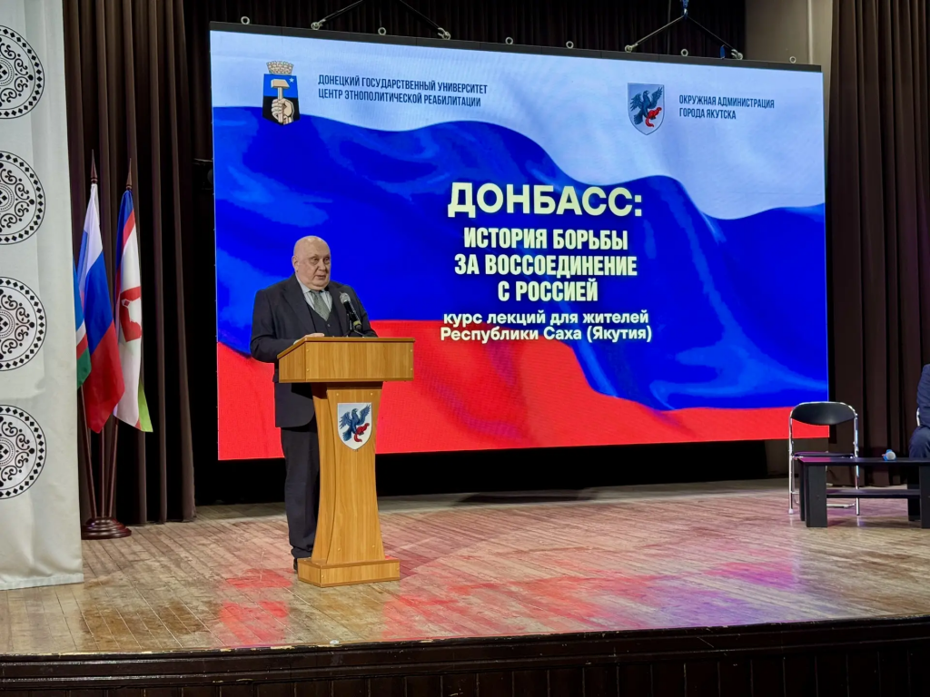 Сегодня, 24 марта, в Якутской городской национальной гимназии имени А.Г. и Н.К. Чиряевых в рамках городского слёта классных руководителей состоялась презентация авторского курса лекций «Донбасс: история борьбы за воссоединение с Россией». Над изданием работали Д.В. Конов, Ю.Б. Николаев, О.В. Онопко, М.В. Руденко (г. Донецк) и С.М. Сергеев (г. Якутск), а также учёные, историки, социологи и педагоги.
