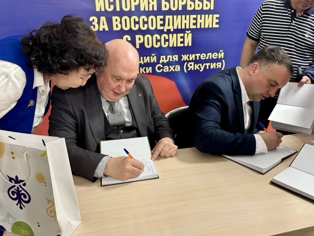 В ходе встречи соавторы книги — советник главы Якутска Сергей Сергеев, директор Центра этнополитической реабилитации Донецкого государственного университета Юрий Николаев и научный сотрудник центра Мирослав Руденко — ответили на вопросы учителей истории и представителей СМИ. Обсуждение вызвало живой интерес: педагоги поднимали актуальные и содержательные вопросы, связанные с преподаванием современной истории. Также директора и учителя образовательных учреждений получили экземпляры книги и приняли участие в автограф-сессии.