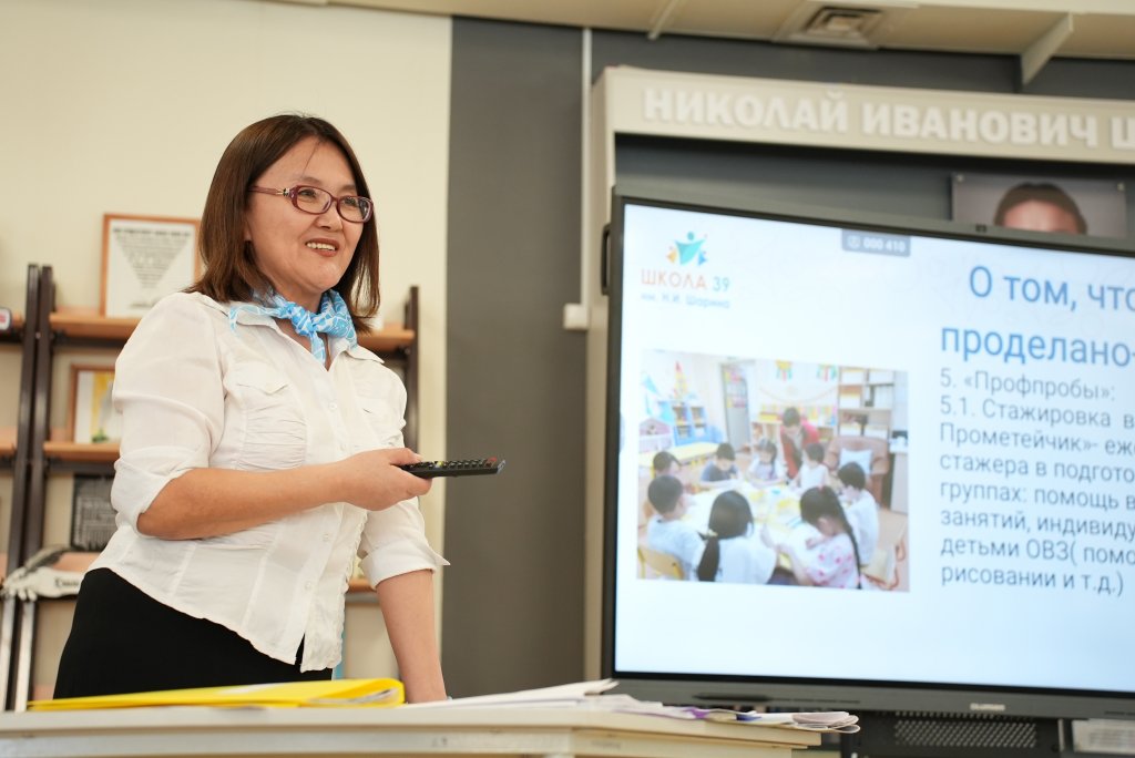 С информацией об организации профильной работы с классами выступили Попова Т.Н., руководитель Центра опережающей подготовки г. Якутск и заместитель директора по качеству школы Балаганчикова Т.Я.