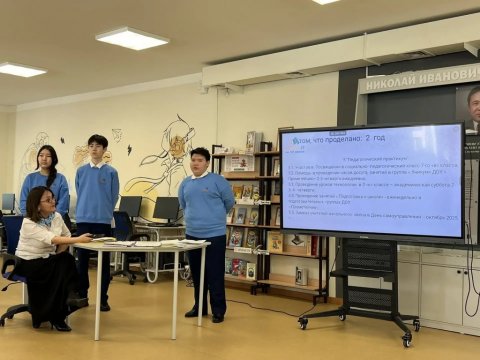 Об опыте работы педагогического класса, первых профессиональных пробах и реализации проектов «Час науки», «Милосердие», «Театральная деятельность», «Музейное дело», «Журналистика» выступила классный руководитель Сивцева А.В. с обучающимися социально- педагогического 8-го «б» класса.