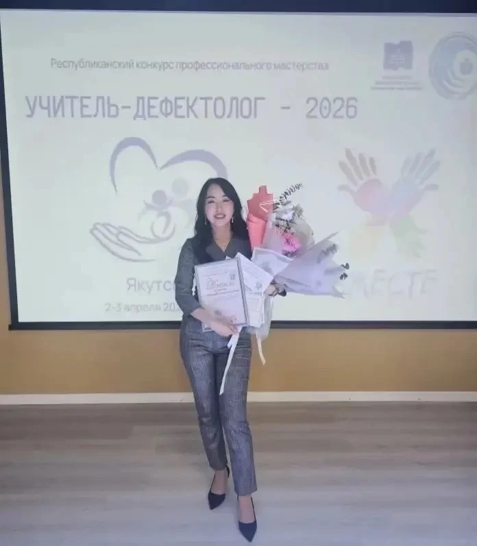 2–3 апреля в Якутске на базе Республиканской специальной коррекционной школы-интерната для обучающихся с тяжёлыми нарушениями речи прошёл республиканский конкурс профессионального мастерства «Учитель-дефектолог – 2026». В нём приняли участие 14 логопедов и дефектологов из разных районов Республики Саха (Якутия). Город Якутск на конкурсе представили учитель-логопед детского сада №7 «Остров сокровищ» Любовь Ефимова и учитель-дефектолог Специальной (коррекционной) общеобразовательной школы VIII вида №4 Евдокия Готовцева.