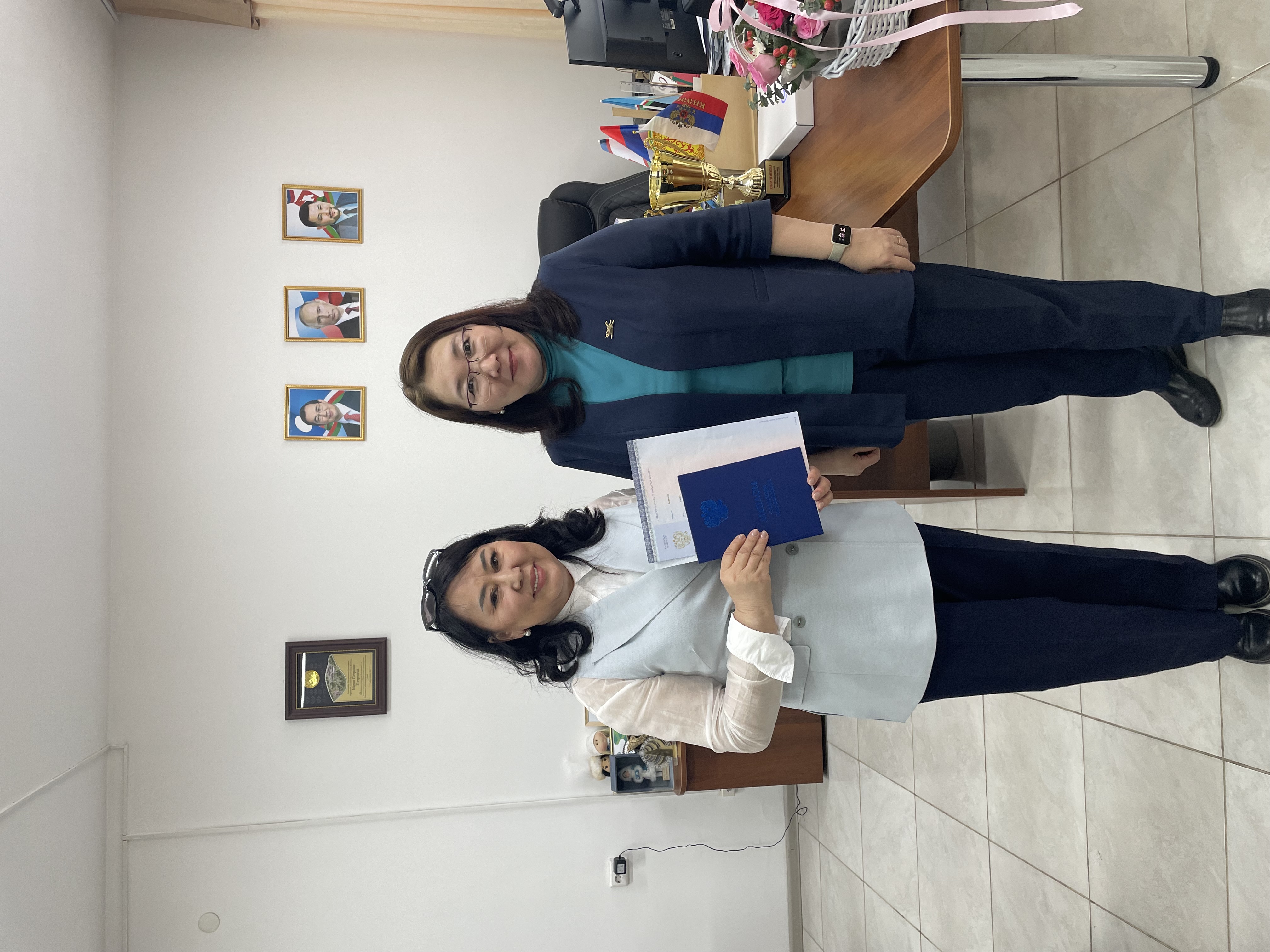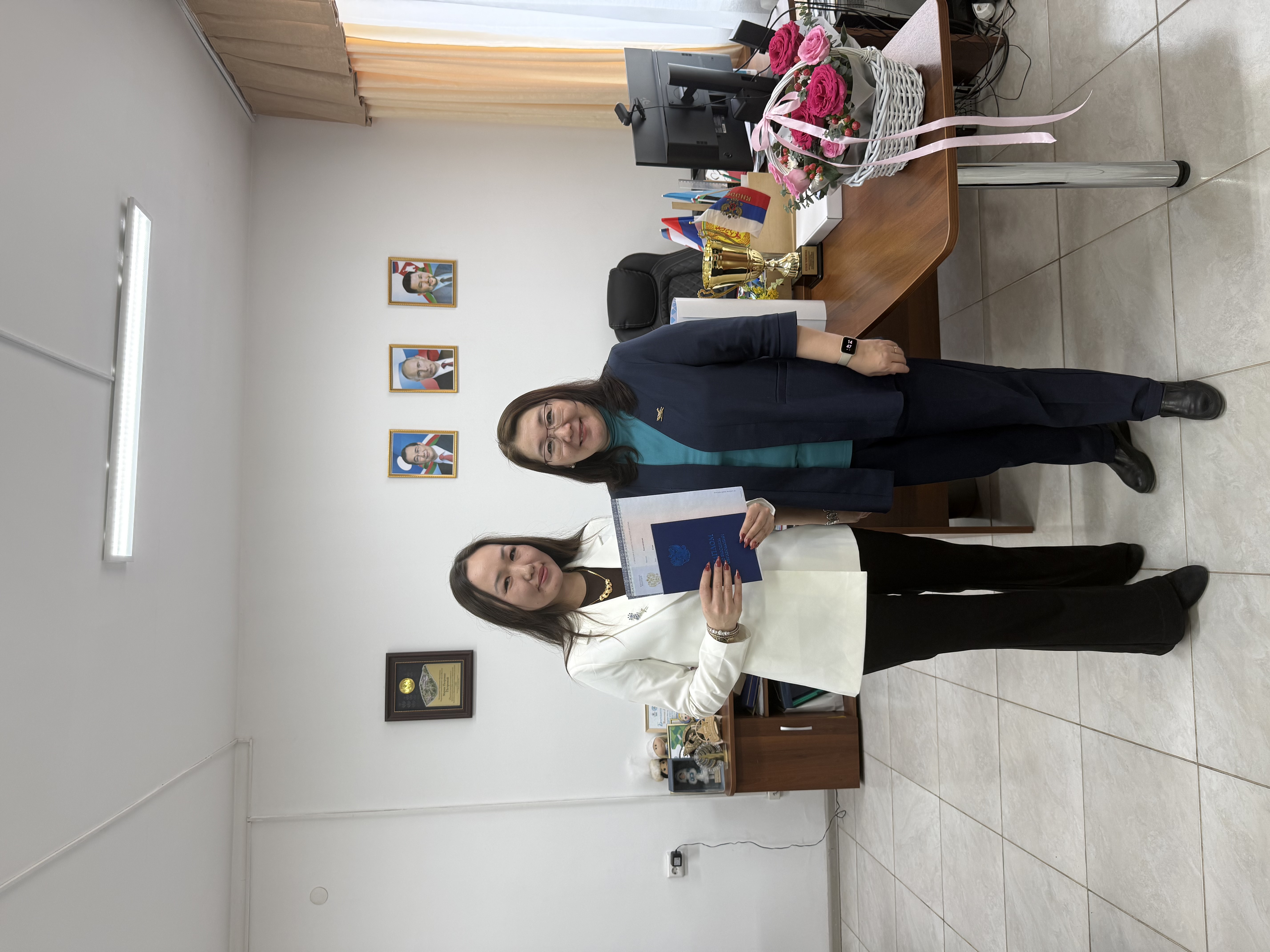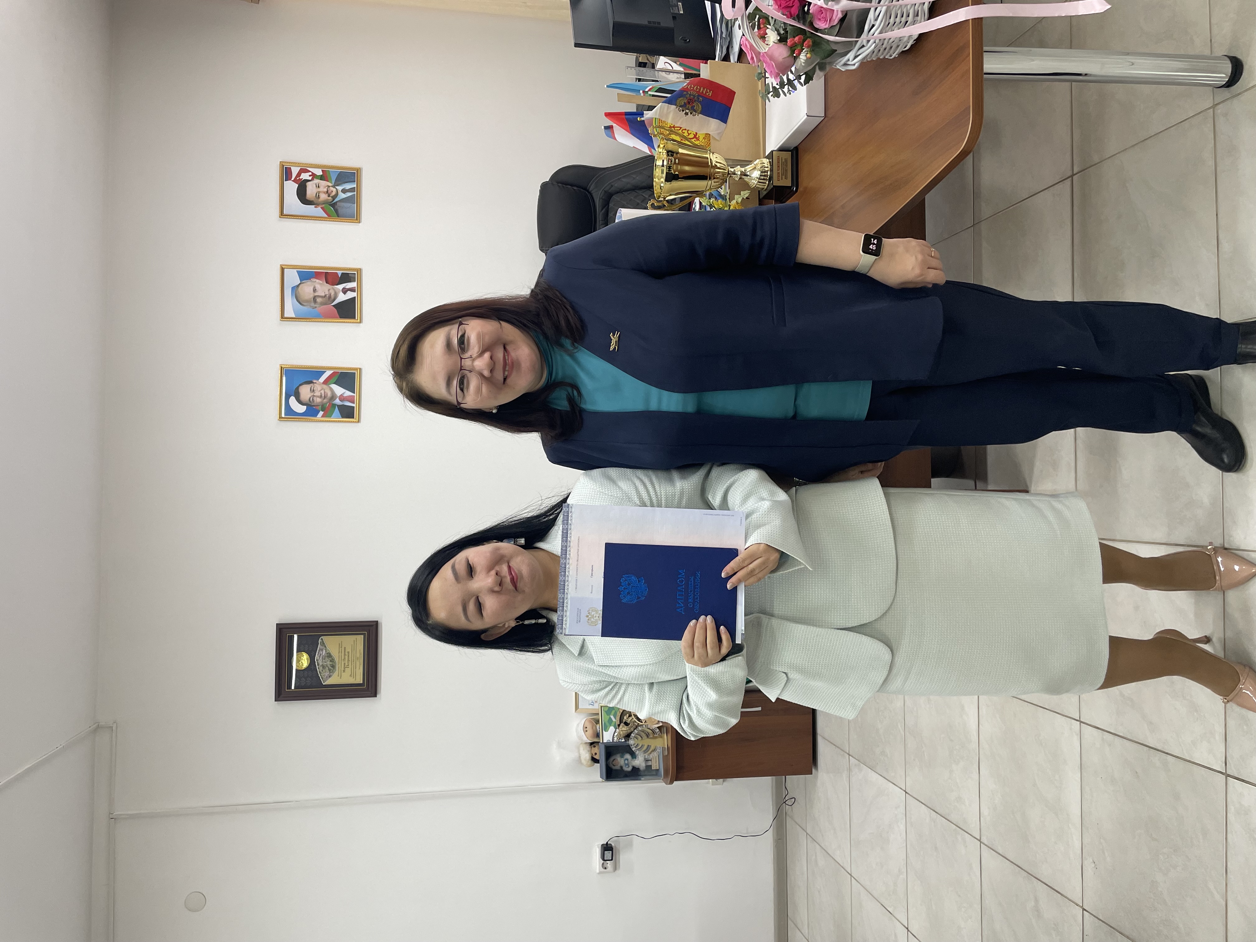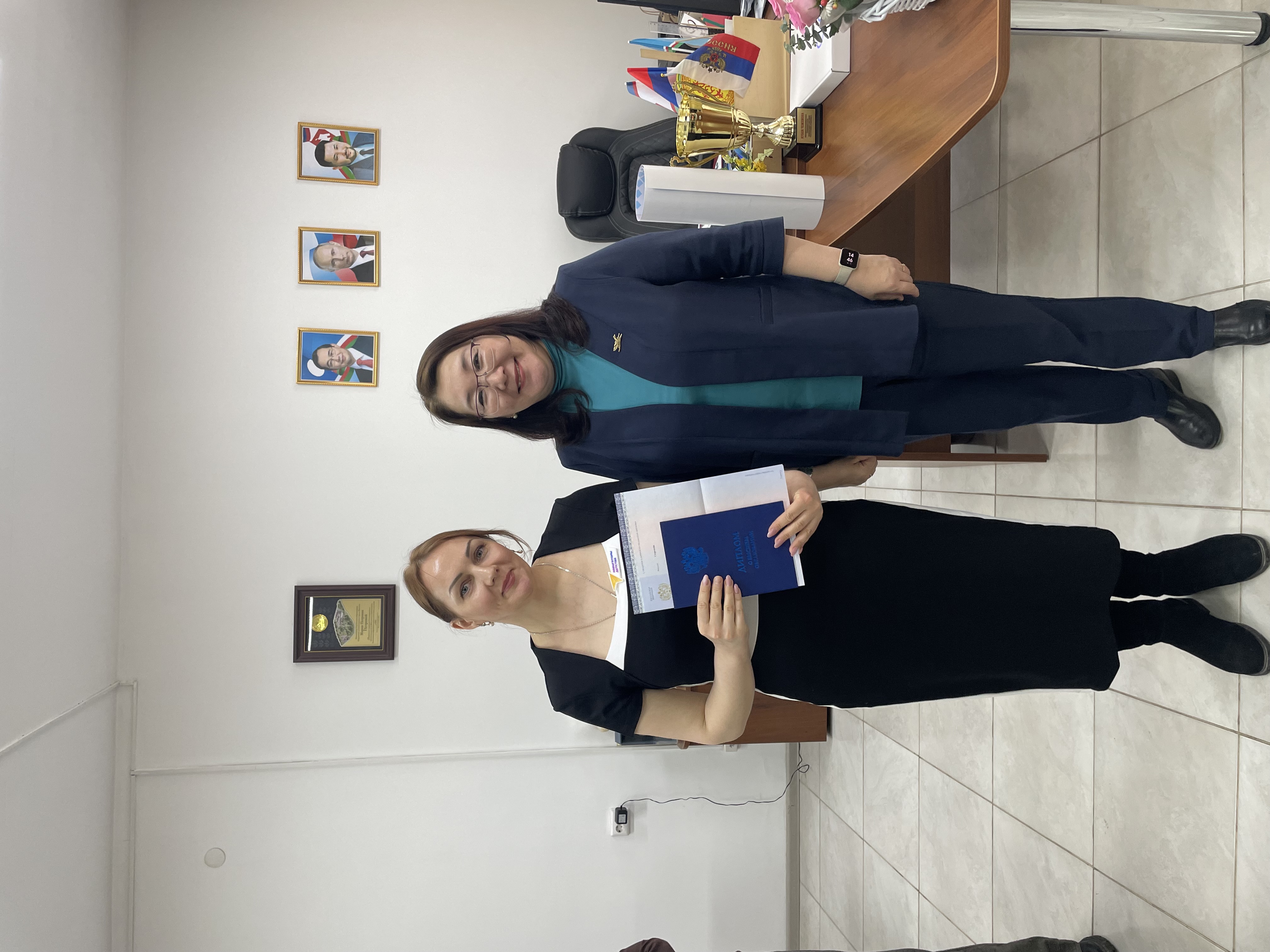 Во время встречи Мария Петровна поздравила педагогов с завершением магистратуры и присвоением степени магистра, вручив им дипломы. Она отметила, что это большое достижение — совмещать напряжённую педагогическую работу с серьёзным обучением. Этот пример показывает, как важно постоянно развиваться и не бояться новых вызовов. И пожелала, чтобы полученные знания принесли много новых идей, помогли реализовать задуманные проекты.