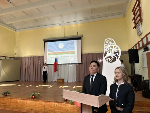 Директор школы Прокопий Дмитриевич Батюшкин также выступил перед участниками мероприятия, рассказав об истории Дня Республики Саха (Якутия) и напомнив о важности сохранения традиций, культуры и единства народа
