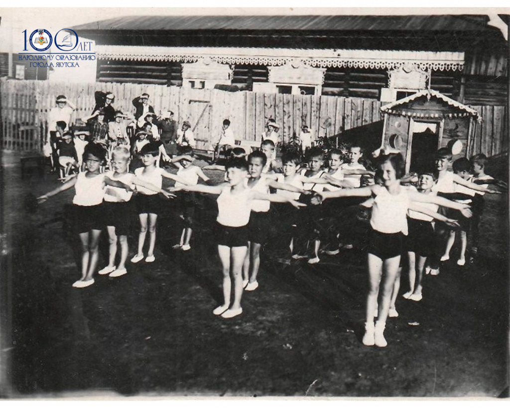 Первая летняя площадка функционировала с июня месяца по 1 сентября 1927 года в Заложном районе города Якутска. Первоначальный сбор детей в течение одной недели был произведен в городском саду, а с 15 июня поместилась в двух комнатах 1 Советской школы, записалось 60 человек, из них 27 мальчиков и 33 девочки, преимущественно дети служащих и рабочих по возрасту от 4 до 9 лет. На детскую площадку записались дети в возрасте 5, 6, 7 лет. По национальности – русских 27, татар 23, евреев 10, якутских детей нет. Штат работников площадки состоял их 3 человек: зав. площадкой, она же руководительница, вторая руководительница и уборщица.