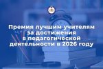 До 16 апреля 2026 года (включительно) проходит прием документов для участия в конкурсе на присуждение Премии лучшим учителям за достижения в педагогической деятельности. Документы принимаются согласно порядку проведения конкурса, включающего в том числе условия участия в нем в 2026 году.